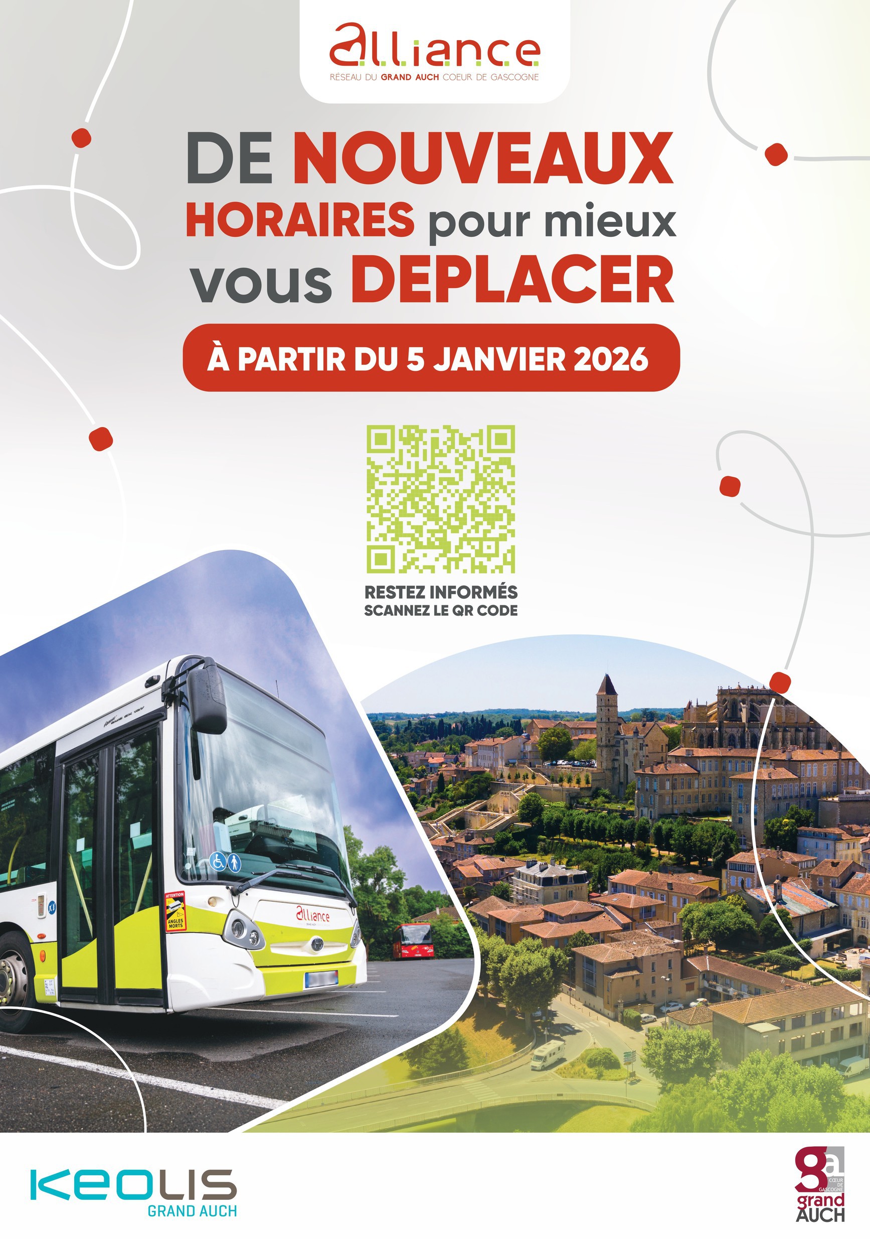 A partir du 5 janvier 2026, des ajustements d’horaires seront apportés sur le réseau de bus Alliance, afin de fluidifier les déplacements des usagers et d’améliorer la qualité du service.
